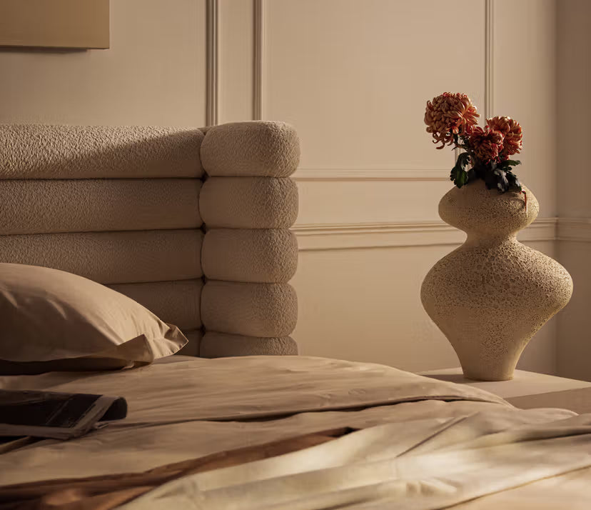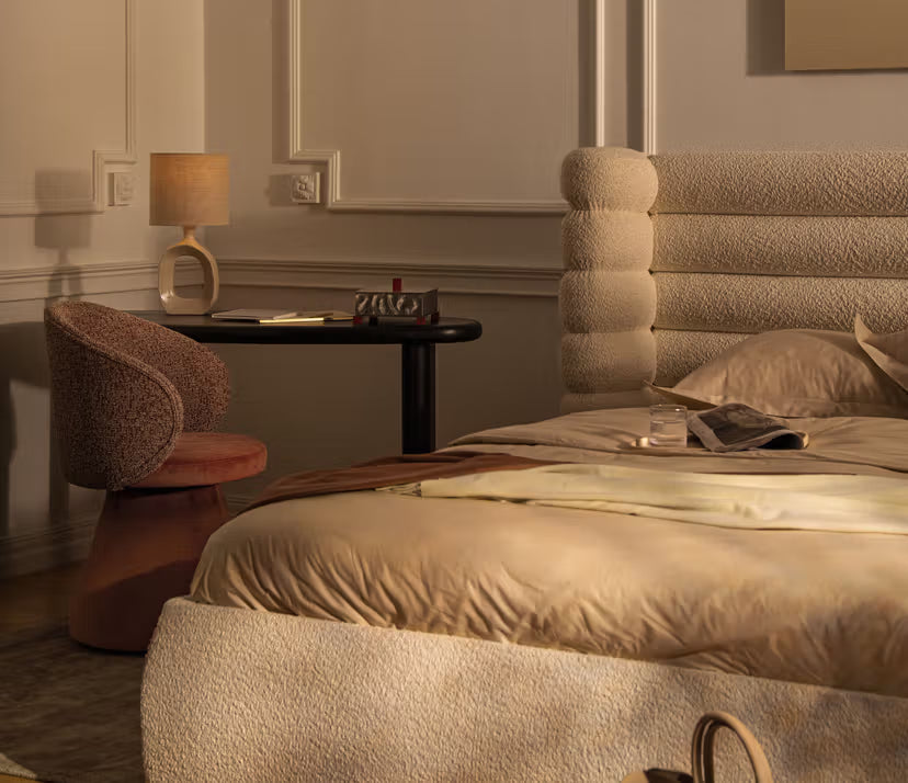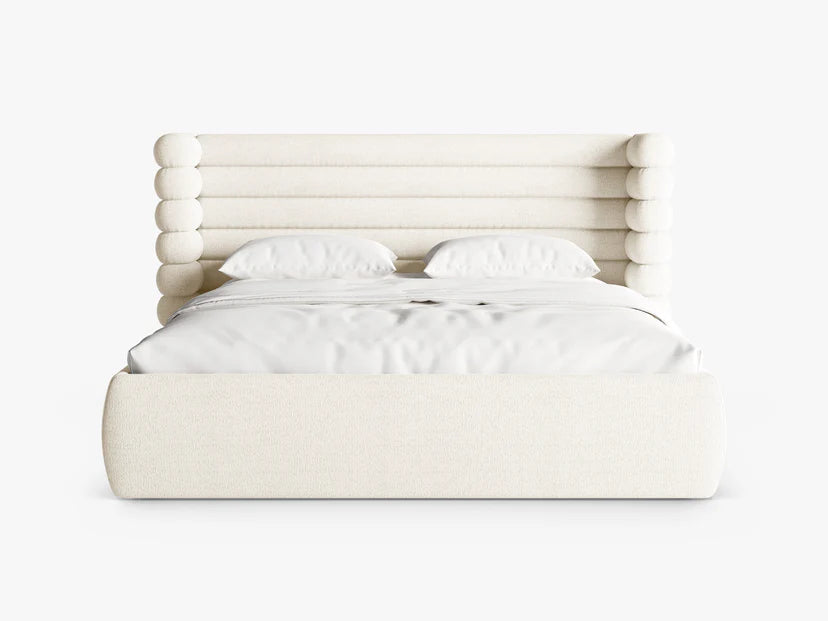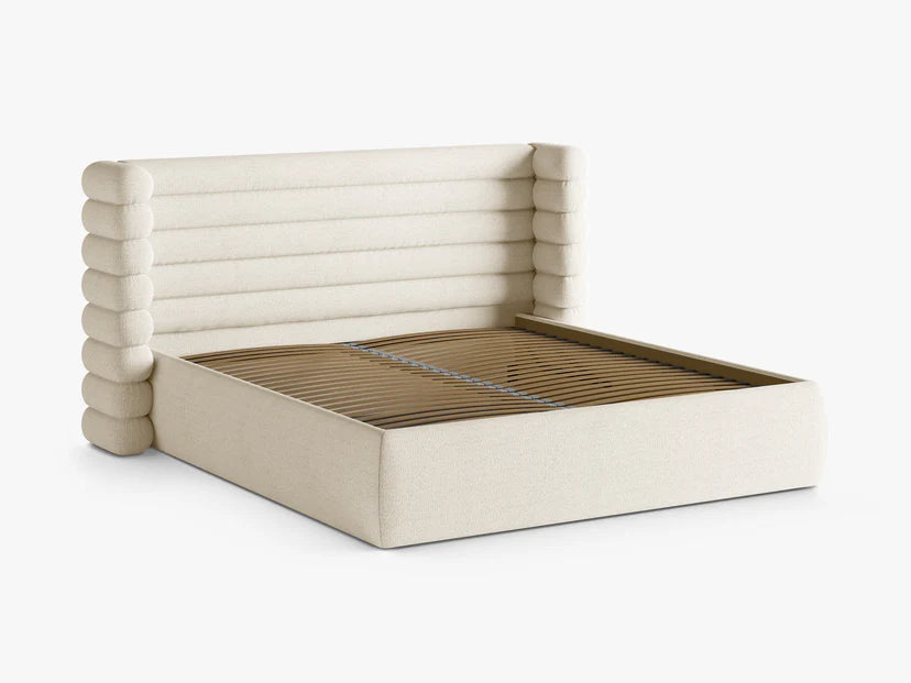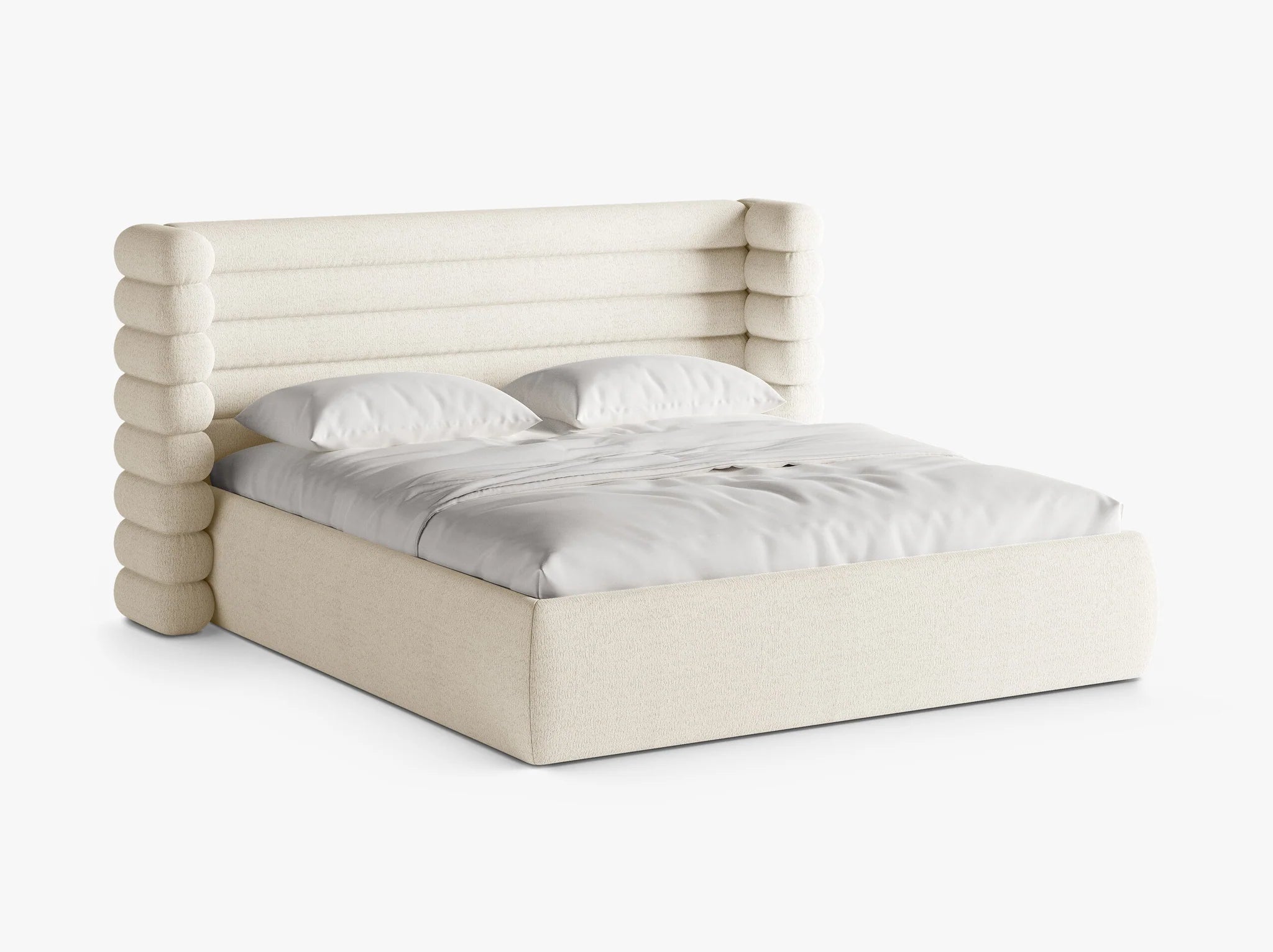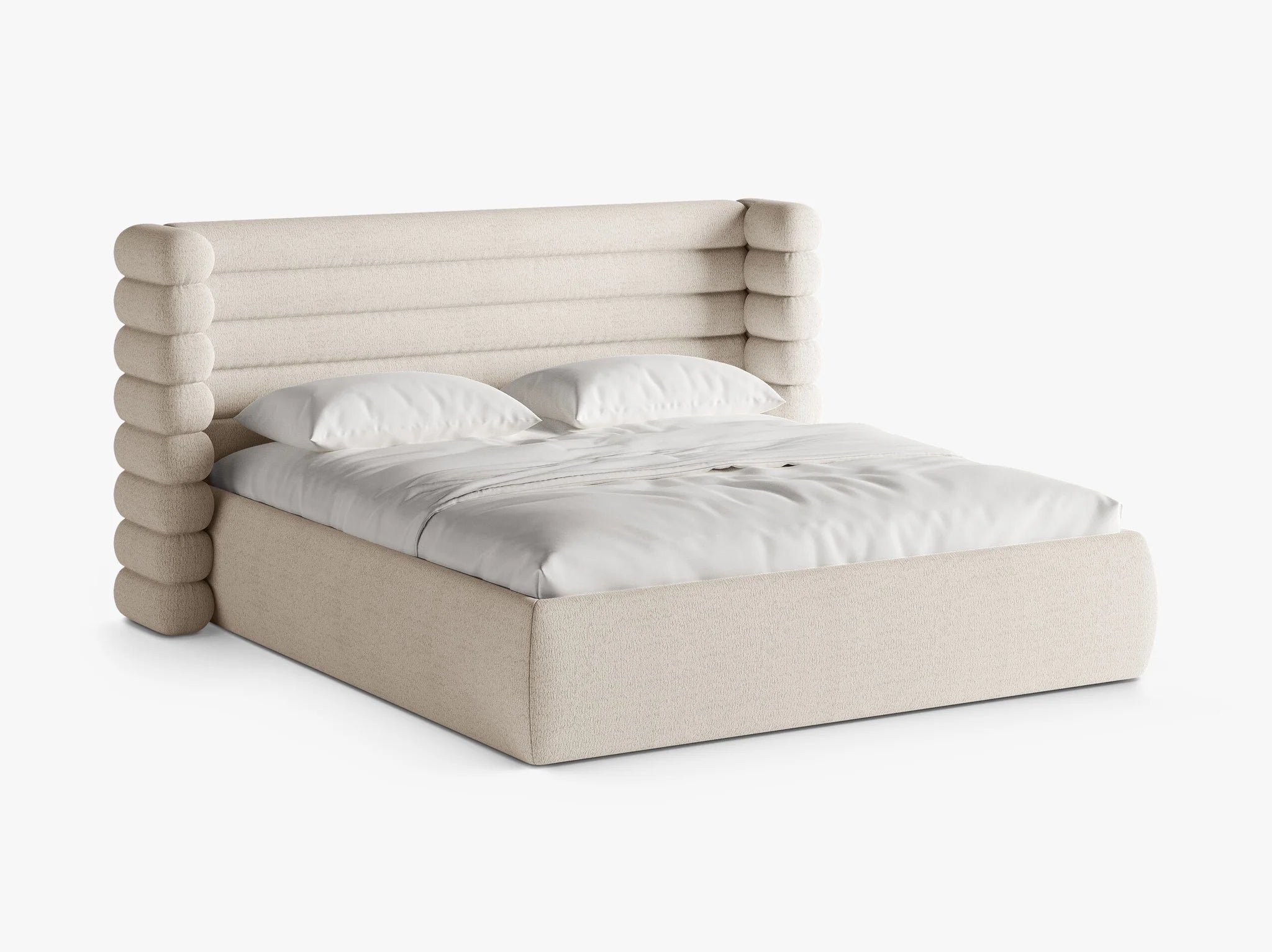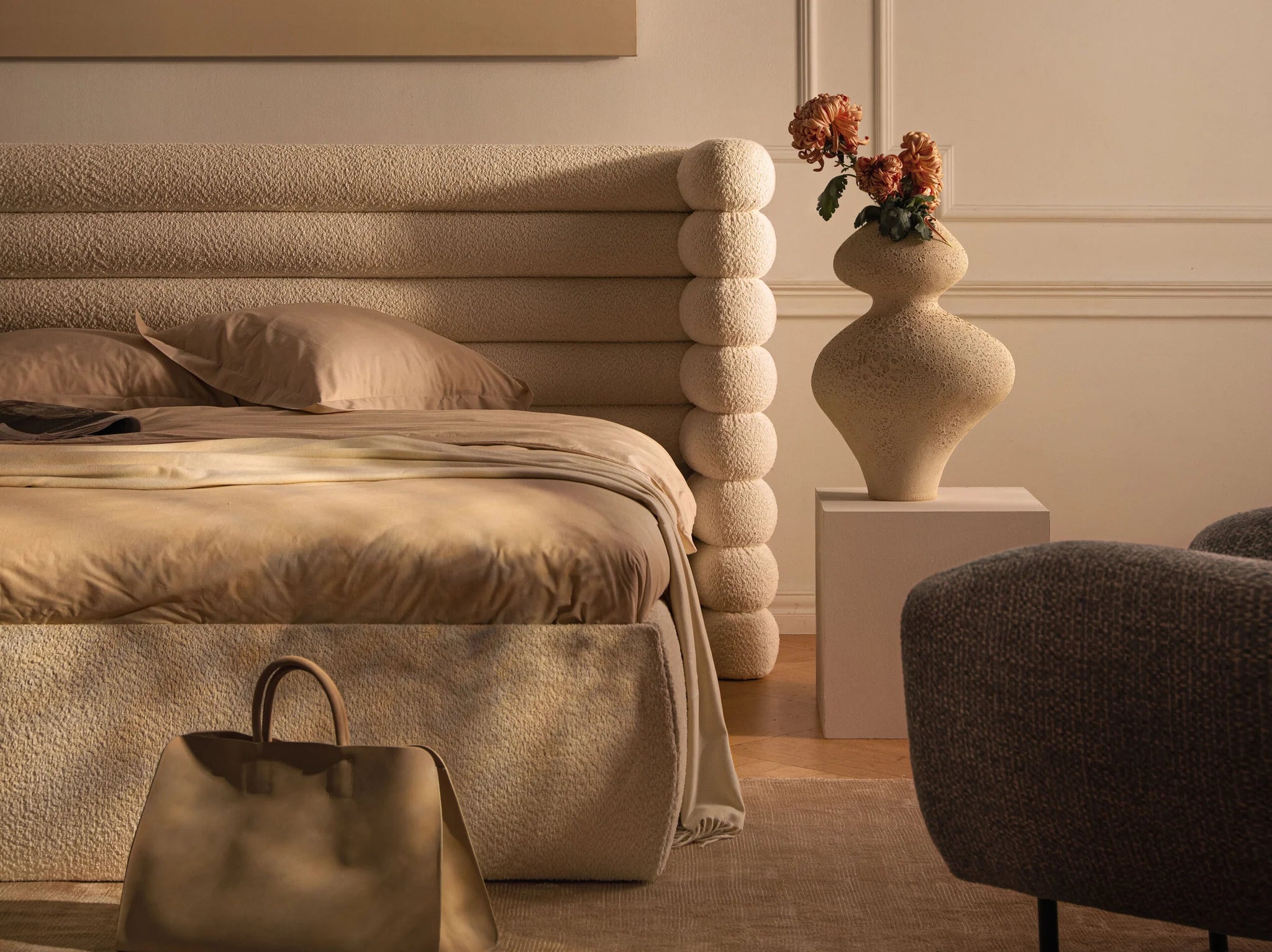 Das Bett Mount verfügt über ein skulpturales Kopfteil und einen Stauraumboden und kombiniert Komfort mit einem mutigen Design. Es ist ideal, um Ihrem Schlafzimmer einen individuellen Charakter zu verleihen.