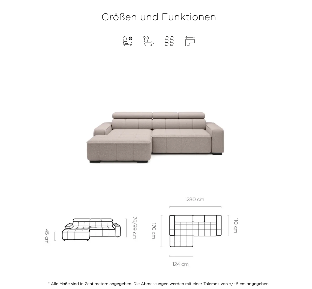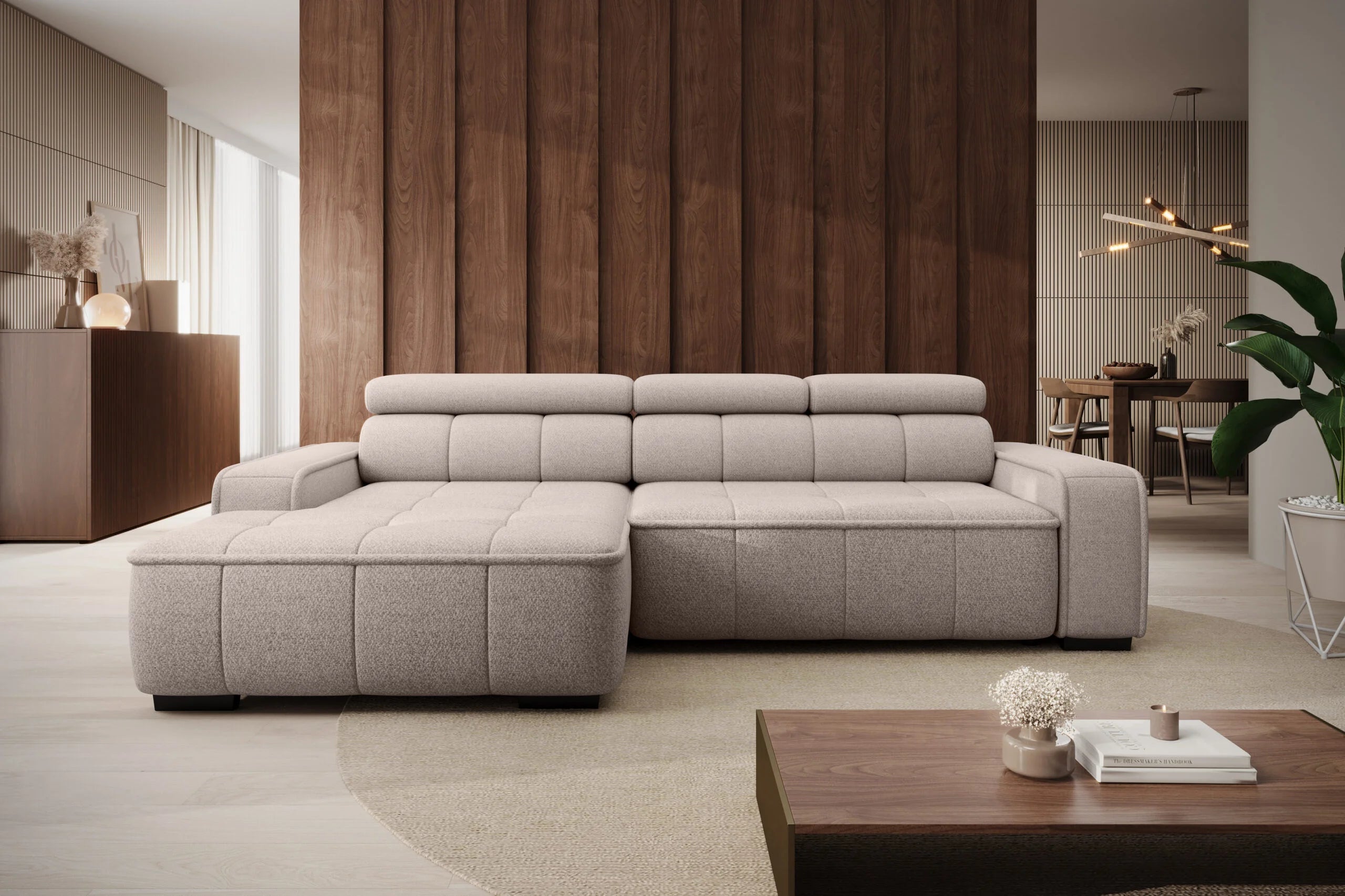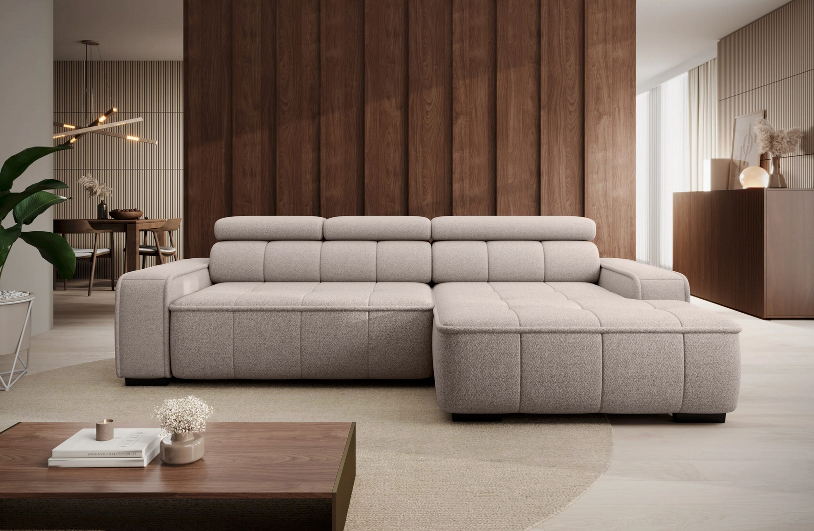 THIAGO S ist ein kleiner Ecksofa mit durchdachtem Design und moderner, klarer Linienführung. Ideal für kompakte Wohnräume, bietet er mit einem elektrisch ausziehbaren Sitz von 27 cm höchsten Komfort. Die verstellbaren Kopfstützen sorgen für zusätzlichen Komfort im Alltag. THIAGO S kombiniert Ästhetik und Funktionalität in kompakter Form.